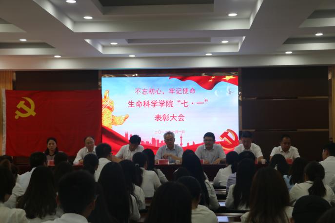 2019年7月1日下午,生命科学学院召开了庆祝建党98周年暨党员表彰大会。校党委组织部副部长张航、全体院领导及师生党员等120多人参加了大会,院党委副书记叶志春主持表彰大会。