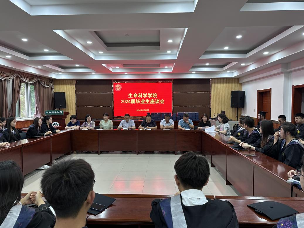 为做好毕业生的思想政治教育和服务管理工作,深入了解毕业生思想动态、就业情况、发展规划,更好落实“立德树人”的根本任务,引导毕业生爱国荣校、建功立业,6月20日,生命科学学院联合生命与食品学部、励行书院举办了2024届毕业生座谈会。生命与食品学部常务副部长、生命科学学院院长苏建宇、励行书院党委书记、院长张强,生命科学学院党总支书记邓光存出席会议,毕业班班主任、导师、辅导员和毕业生代表相聚一堂,共叙在宁大学习生活的成长感悟和对学院发展建设的建议意见,会议由学院党总支书记邓光存主持。