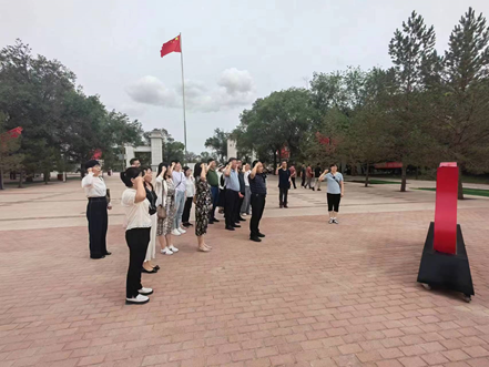 下午,全体成员前往参观盐池县革命烈士纪念馆。通过参观和讲解员的介绍,从政治、军事、经济、文化等方面全面了解了从盐池解放到全国解放13年的辉煌革命历程,重温了那段盐池儿女红心向党,踊跃参军,浴血奋战,前赴后继的峥嵘岁月。随后,全体党员向盐池县革命烈士纪念碑敬献了花篮并重温了入党誓词。