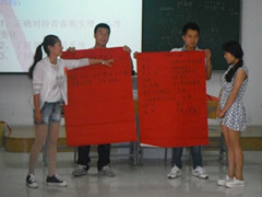 为了进一步加强教学过程中师生互动,提高师范生参与性与生殖健康知识教育工作责任和意识,2015年6月24日,在宁夏大学校办(计划生育办)的大力支持下,生命科学师范生健康促进能力拓展基地(宁夏大学生性与生殖健康教育基地),在C区L楼201教室举办了2015年第三期大学生性与生殖健康知识同伴教育骨干能力拓展培训班。徐明教授对本学期选修《性与生殖健康教育》通识教育选修课程的45名各专业的师范生志愿者,进行了青春期性健康知识、同伴教育理论、艾滋病防治知识及传播知识的系统培训,在整个培训过程中,学员们通过互动和讨论,以及积极健康的游戏活动,不仅获取了知识,而且增强了参与性与生殖健康教育工作的责任和意识。