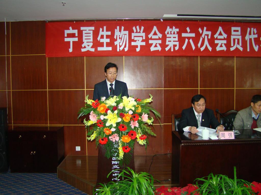 宁夏生物学会第六次会员代表大会在自治区科协和学会挂靠单位-betway必威官方网站的大力支持下,于2010年10月16日在宁夏大学国际交流中心顺利召开。来自植物学专业委员会、动物学专业委员会、微生物学专业委员会、遗传学专业委员会、昆虫学专业委员会、生物技术专业委员会、生物化学与分子生物学专业委员会、免疫学专业委员会和中学生物教学法专业委员会等9个学会分支机构的145名代表参加了本次大会。自治区民政厅党组成员、自治区社会组织党工委张成军副书记,民间组织管理局马玲副局长,宁夏大学许兴副校长、李星副校长,自治区科协王冰副主席,学会部贺党立主任出席了本次大会。宁夏大学科协、宁夏生态学会、宁夏水产学会等兄弟学会的代表也出席了本次会议。中国微生物学会、中国植物学会、中国动物学会、中国遗传学会、宁夏水产学会等为大会的召开发来贺信、贺电。