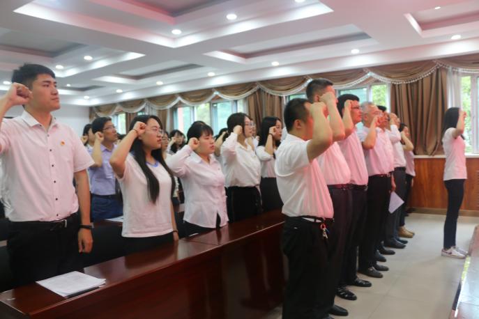 随后,全体党员及预备党员对着党旗进行了庄严的入党宣誓,重温入党誓词,并合唱了《没有共产党就没有新中国》。