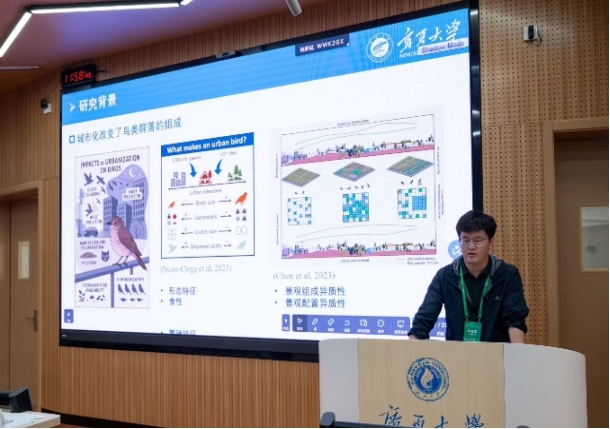 学院动物学学科团队杨英副教授、杨文治副教授带领博士研究生赵富强、袁鹏参加了本次盛会。博士生赵富强通过大会学术委员会遴选,在“鸟类群落生态学研究”分会场中作了以《快速城市化格局下的蓝绿基础设施鸟类群落β多样性及其驱动因素》为题的口头报告。报告系统介绍了基于景观生态学探究银川市蓝绿基础设施的鸟类群落构建格局及其驱动机制的最新研究成果,报告内容受到多位专家学者的关注与热烈讨论,充分展示了学院青年科研人员在鸟类生态学领域的研究实力与创新能力。目前该研究成果以betway必威官方网站为第一研究单位,张大治教授为通讯作者,发表于国际鸟类学领域期刊Avian Research(中国科学院分区:一区TOP,论文链接:https://doi.org/10.1016/j.avrs.2025.100316)。本次会议上博士研究生袁鹏也通过壁报交流等形式展示了最新科研进展。