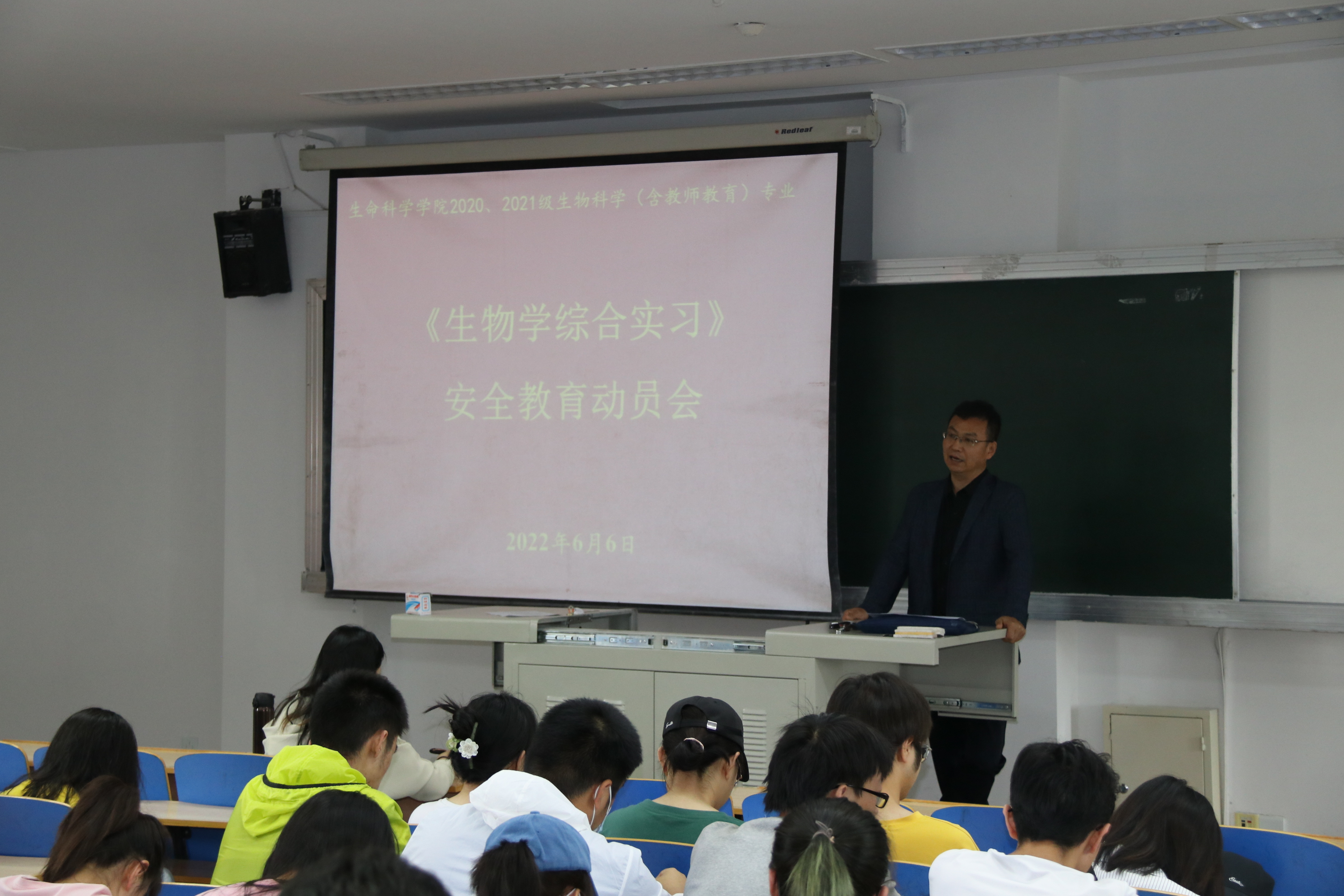 根据教学工作安排,20级生物科学(教师教育)生物科学专业38名学生21级生物科学(师范)专业39名学生将于6月6日-16日开展为期10天的生物学综合实习。通过这次会议,同学们普遍此次实习有了更深入的认识,进一步强化纪律观念,端正了实习态度,明确了实习目标和任务,为顺利完成生物学综合实习打牢了基础。