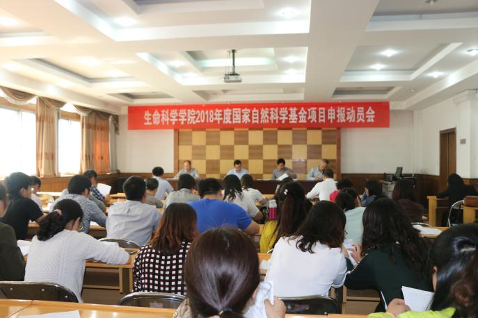 为了总结2017年度国家自然科学基金项目申报工作经验,科学规划和合理安排2018年的申报工作,调动和激发广大教师申报国家自然科学基金项目的积极性,生命科学学院于9月27日下午隆重召开了“2018年度国家自然科学基金项目申报动员会”。学校科技处处长李学斌应邀亲临动员会指导工作,学院党委书记沈岩东主持会议,学院全体教职工参加了会议。