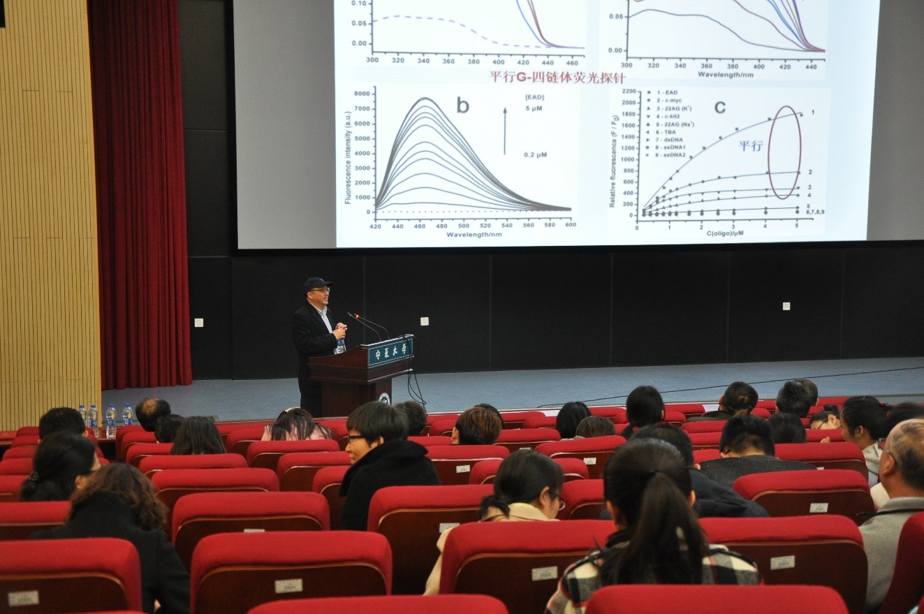 访问期间,上官棣华教授参观了betway必威官方网站西部特色生物资源保护与利用教育部重点实验室,并与学院科研骨干进行了座谈交流。3月29日下午,在宁夏大学贺兰山校区科技楼报告厅,上官棣华教授为生命科学学院、化学化工学院的师生作了题为“功能核酸的分子识别与应用”的精彩学术报告。报告会由宁夏大学校长助理、党委常委马涛主持。报告会结束后,马涛向上官棣华教授颁发了宁夏大学兼职教授聘书,并希望生命科学学院、化学化工学院加强与中国科学院化学研究所的沟通与合作,产出高水平科研成果,促进宁夏大学“双一流”建设工作。